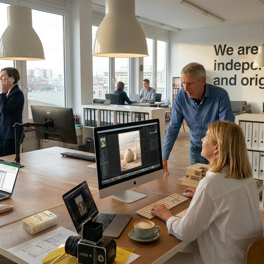 Als kleines Studio in Berlin arbeiten wir bis heute bewusst in einem persönlichen Rahmen. Mit Sorgfalt, Präzision und einem klaren Blick für Gestaltung entwickeln wir Lösungen, die auf das Wesentliche konzentriert sind. So entstehen Arbeiten mit Haltung, Substanz in einer ruhigen, wirksamen Form.